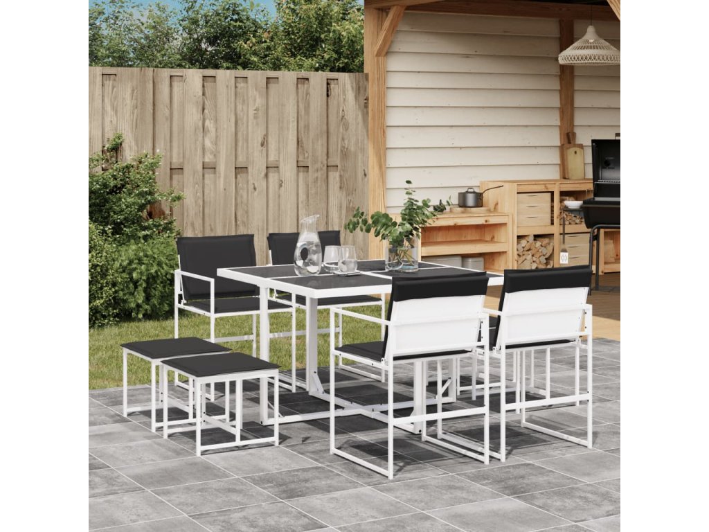 vidaXL 9-dielna záhradná jedálenská súprava s vankúšmi biela textilén