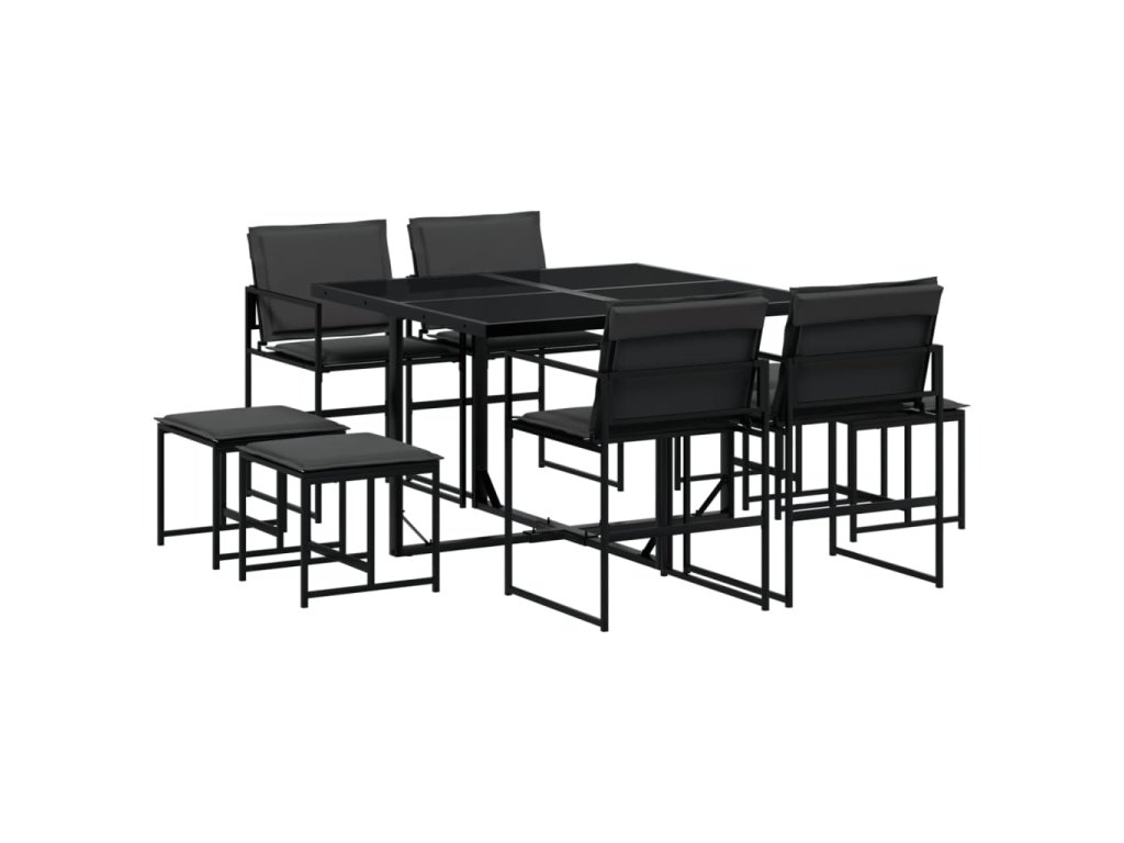 vidaXL 9-dielna záhradná jedálenská súprava s vankúšmi čierna textilén