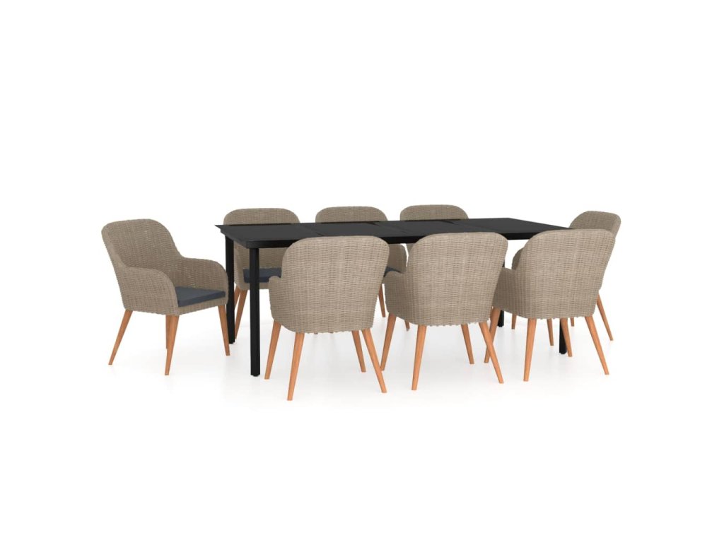 vidaXL 9-dielna záhradná jedálenská súprava s vankúšmi hnedá
