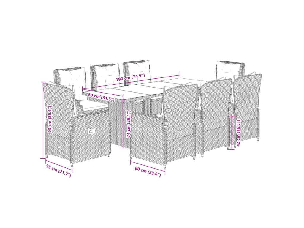 vidaXL 9-dielna záhradná jedálenská súprava s vankúšmi hnedá polyratan