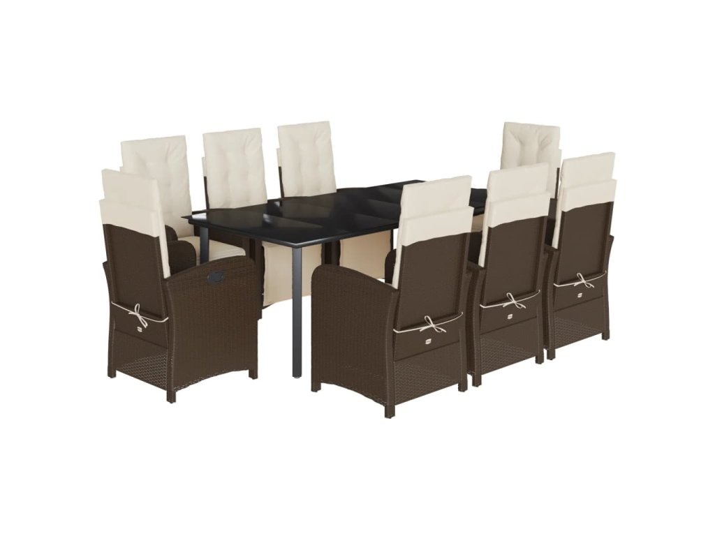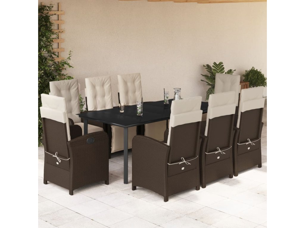 vidaXL 9-dielna záhradná jedálenská súprava s vankúšmi hnedá polyratan