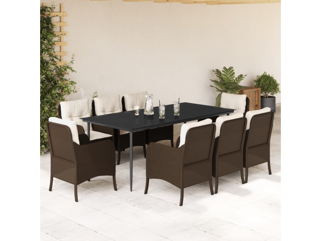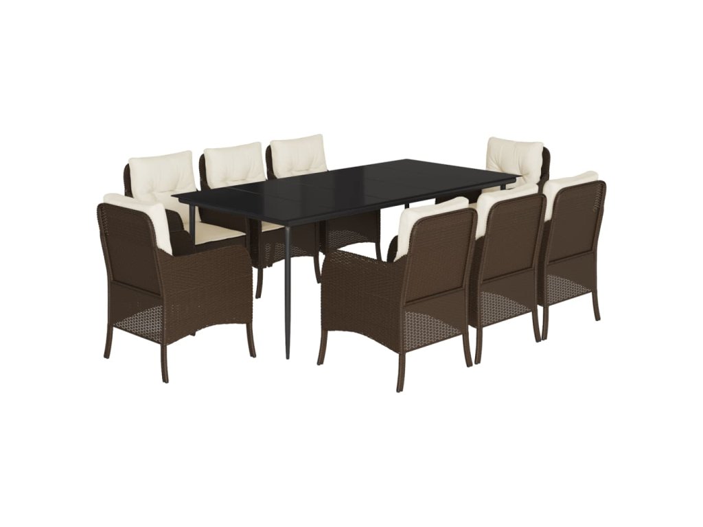 vidaXL 9-dielna záhradná jedálenská súprava s vankúšmi hnedá polyratan