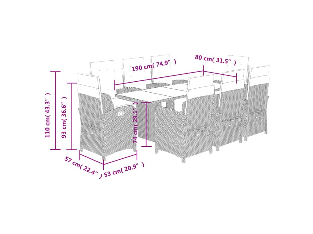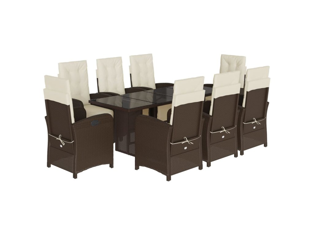 vidaXL 9-dielna záhradná jedálenská súprava s vankúšmi hnedá polyratan