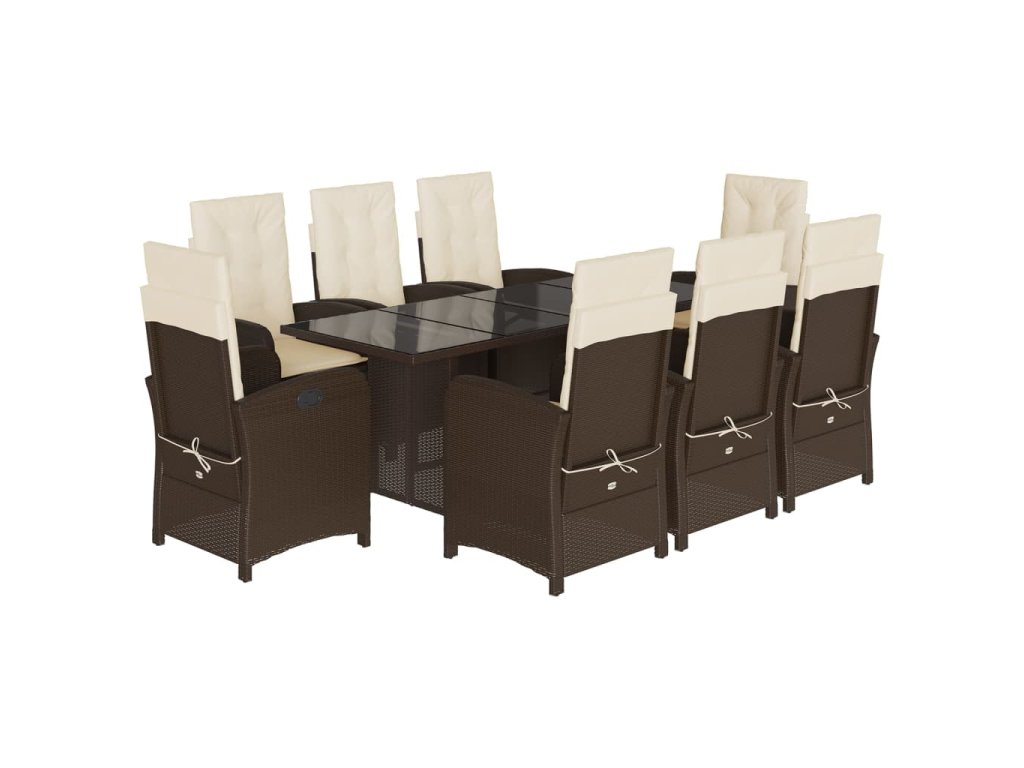 vidaXL 9-dielna záhradná jedálenská súprava s vankúšmi hnedá polyratan