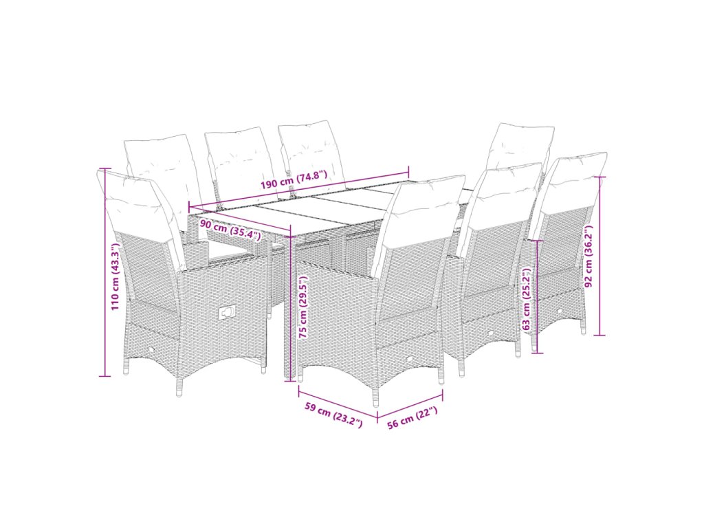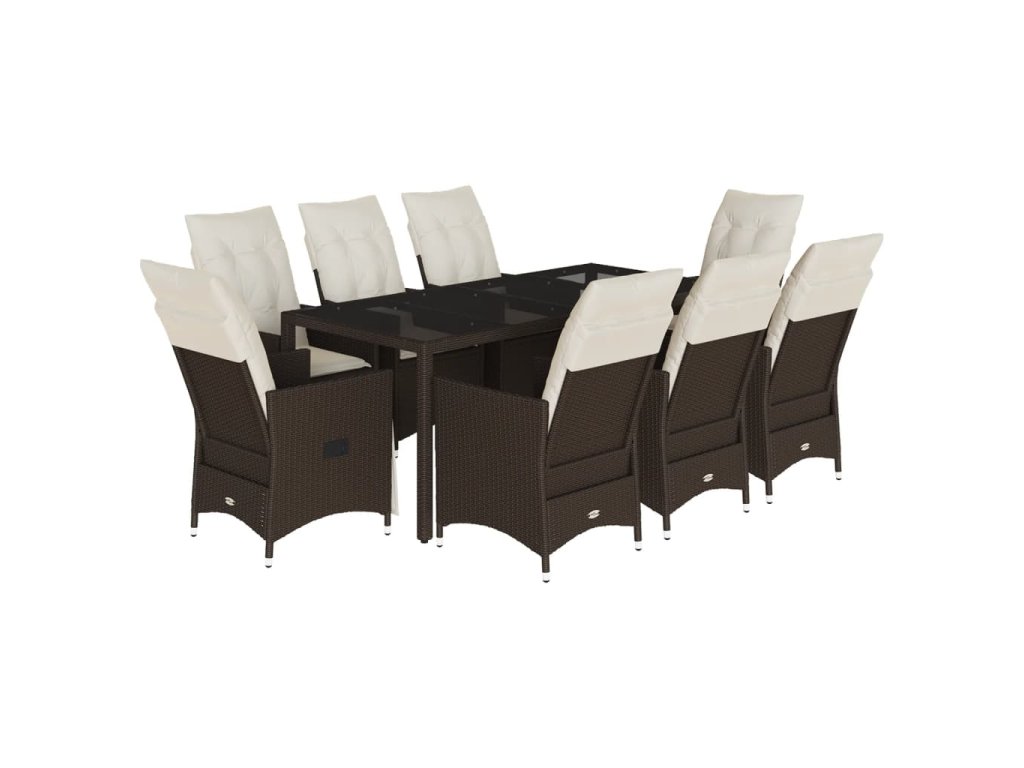 vidaXL 9-dielna záhradná jedálenská súprava s vankúšmi hnedá polyratan