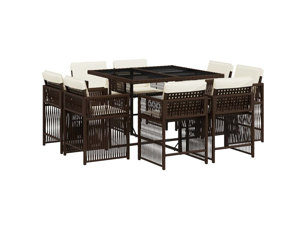 vidaXL 9-dielna záhradná jedálenská súprava s vankúšmi hnedá polyratan