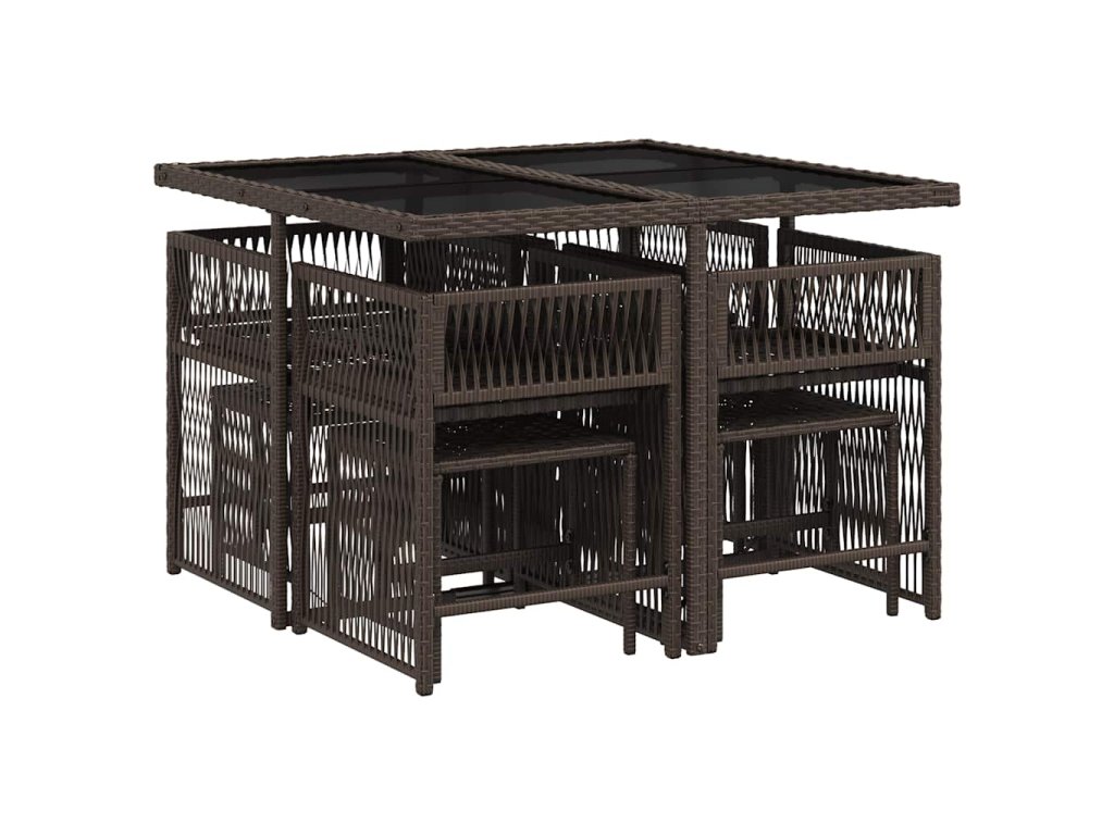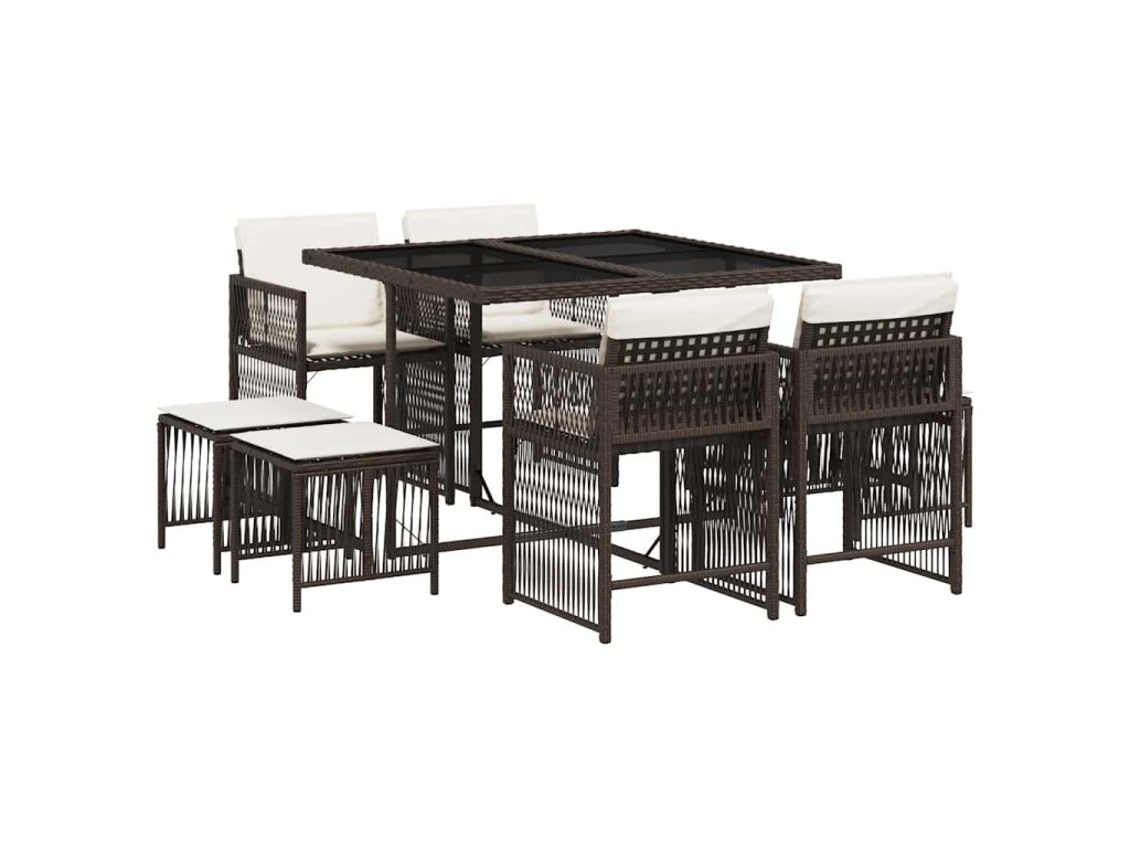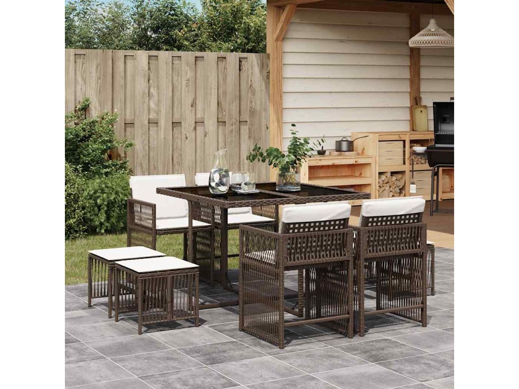 vidaXL 9-dielna záhradná jedálenská súprava s vankúšmi hnedá polyratan