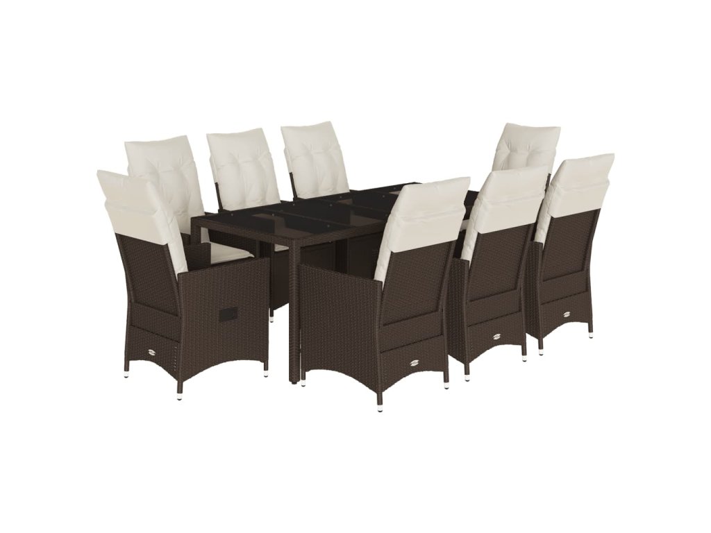 vidaXL 9-dielna záhradná jedálenská súprava s vankúšmi hnedá polyratan