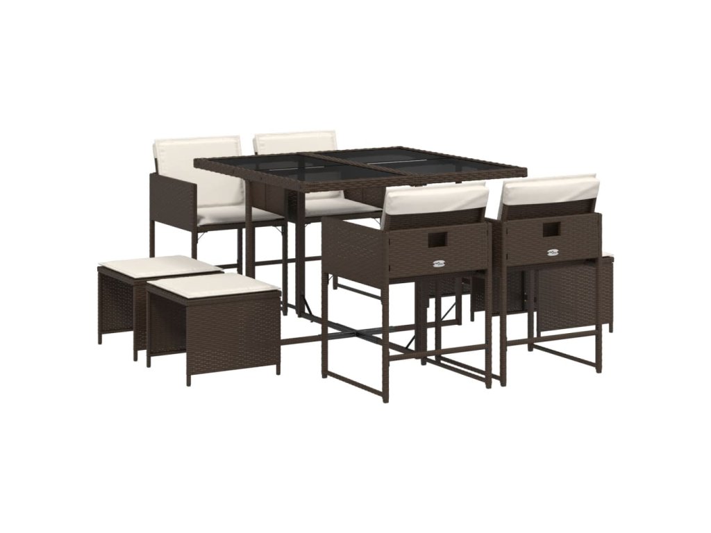 vidaXL 9-dielna záhradná jedálenská súprava s vankúšmi hnedá polyratan