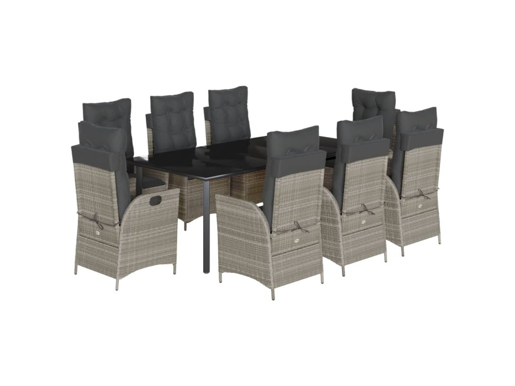 vidaXL 9-dielna záhradná jedálenská súprava s vankúšmi sivá polyratan