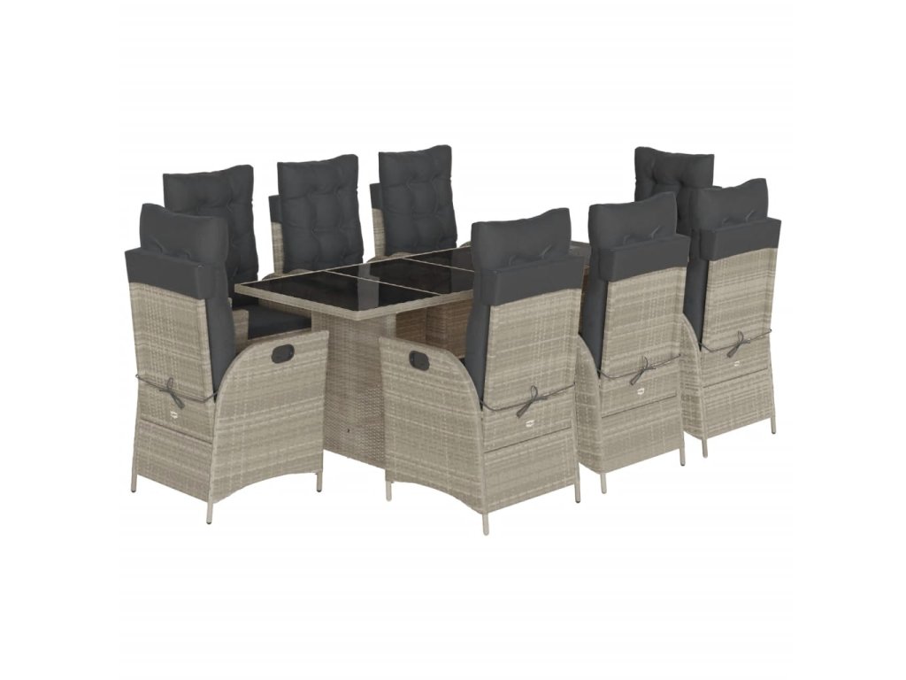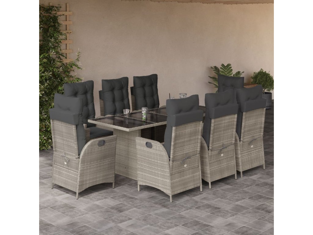 vidaXL 9-dielna záhradná jedálenská súprava s vankúšmi sivá polyratan