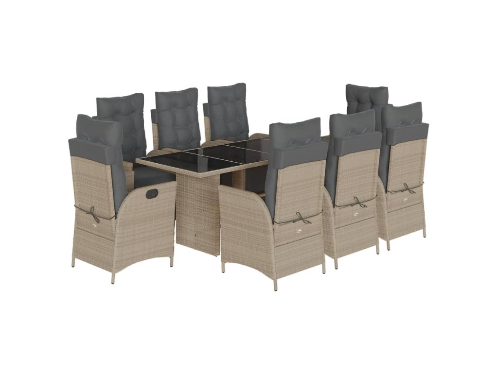 vidaXL 9-dielna záhradná jedálenská súprava s vankúšmi sivá polyratan
