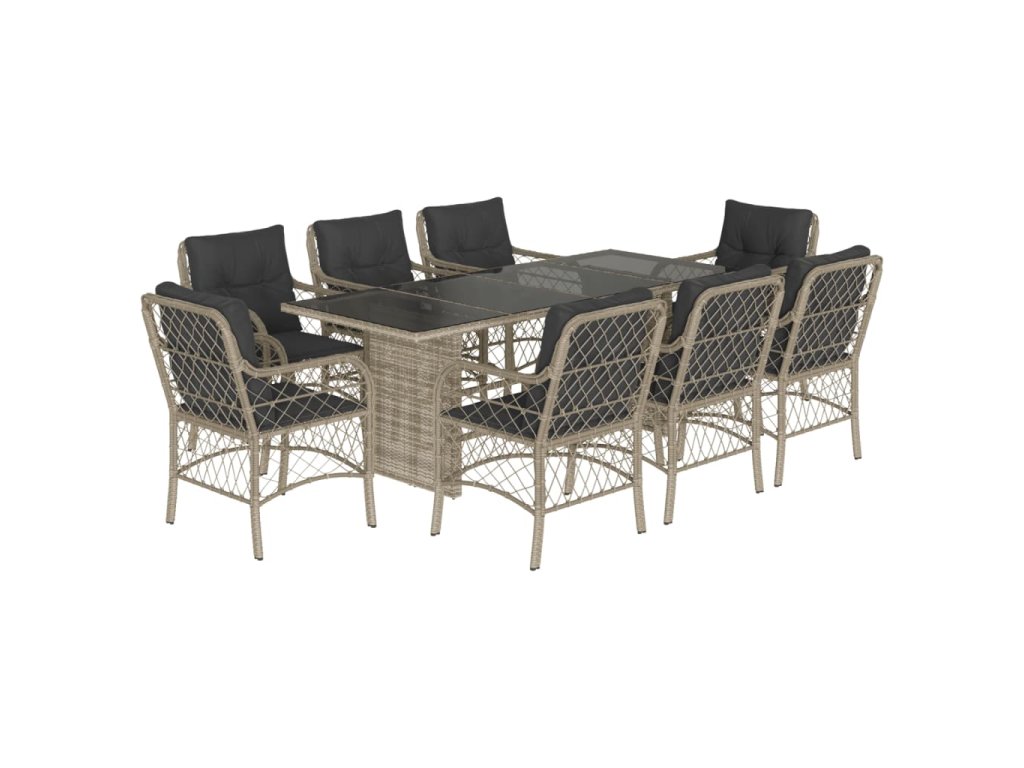 vidaXL 9-dielna záhradná jedálenská súprava s vankúšmi sivá polyratan