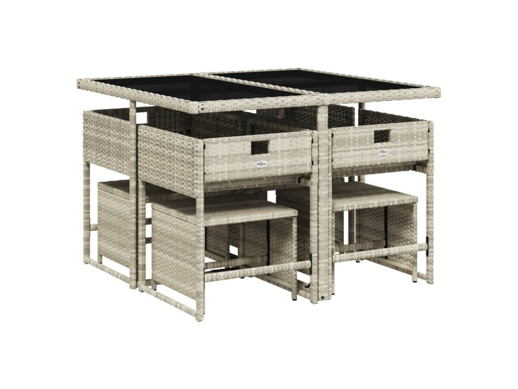 - Materiál: PE ratan, oceľ s práškovou povrchovou úpravou, tvrdené sklo