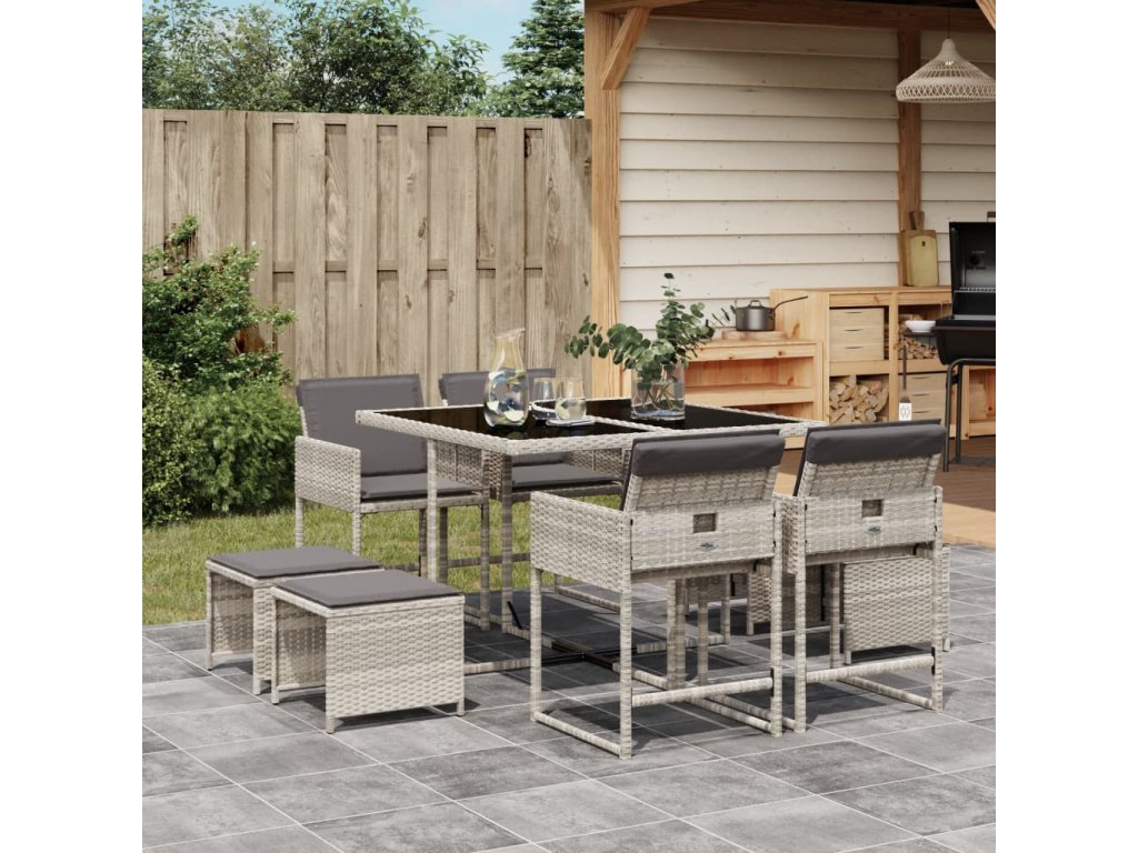 vidaXL 9-dielna záhradná jedálenská súprava s vankúšmi sivá polyratan