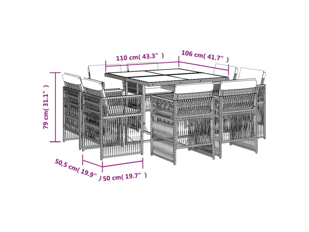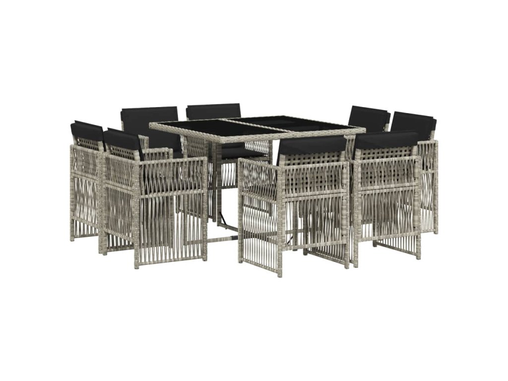 vidaXL 9-dielna záhradná jedálenská súprava s vankúšmi sivá polyratan