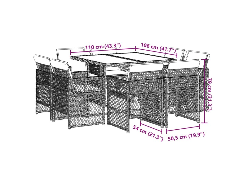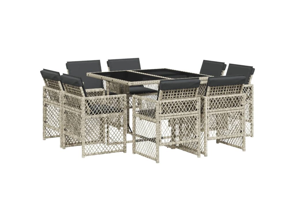 vidaXL 9-dielna záhradná jedálenská súprava s vankúšmi sivá polyratan