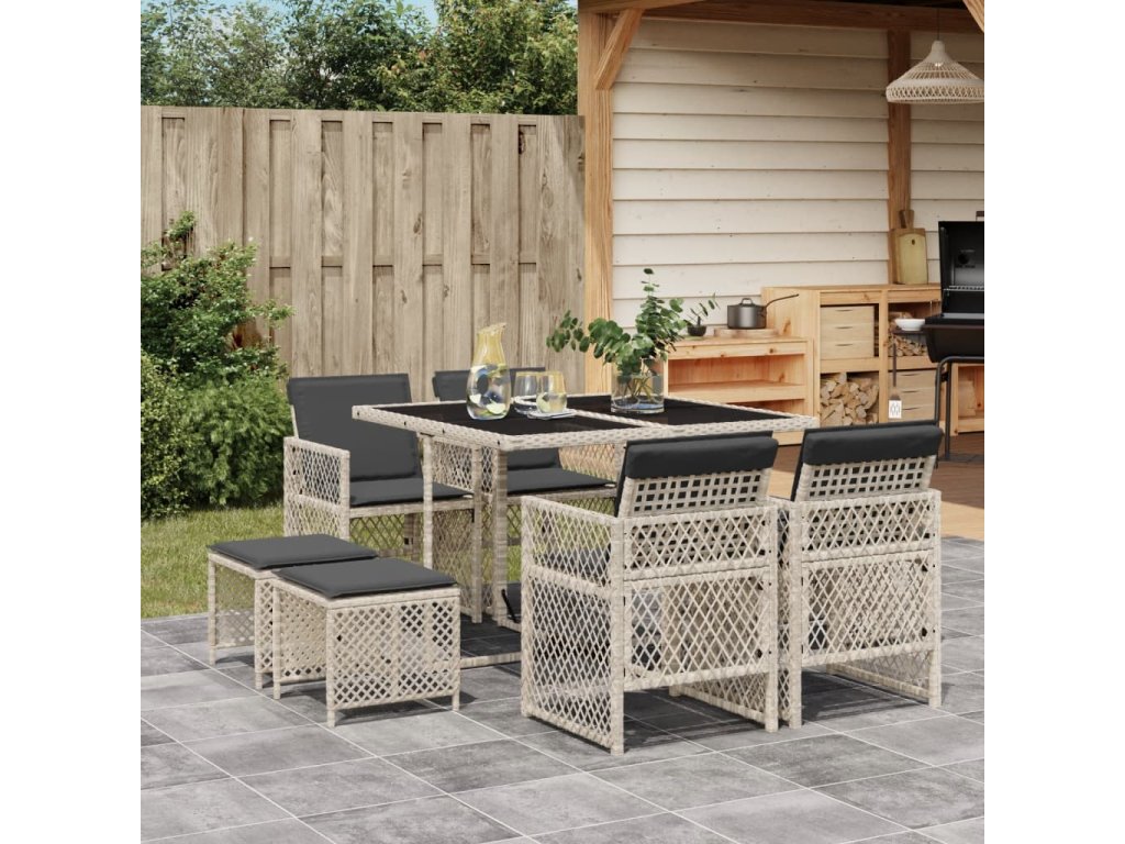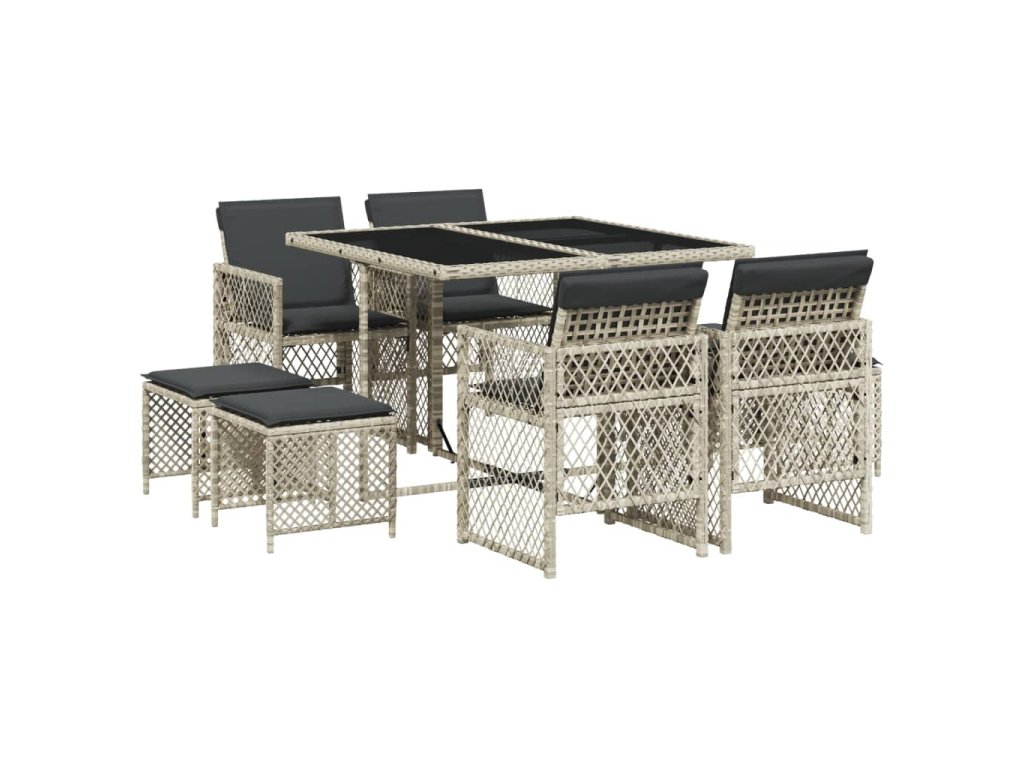 vidaXL 9-dielna záhradná jedálenská súprava s vankúšmi sivá polyratan