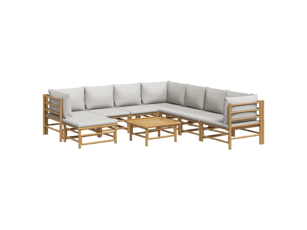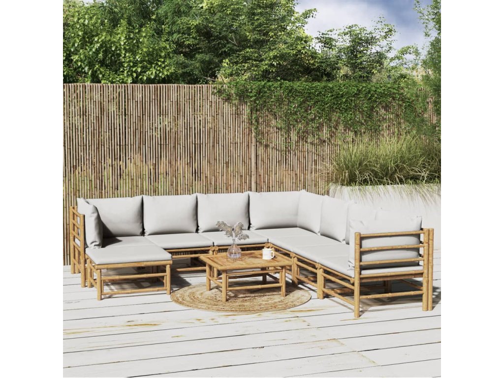 vidaXL 9-dielna záhradná sedacia súprava bledosivé vankúše bambus