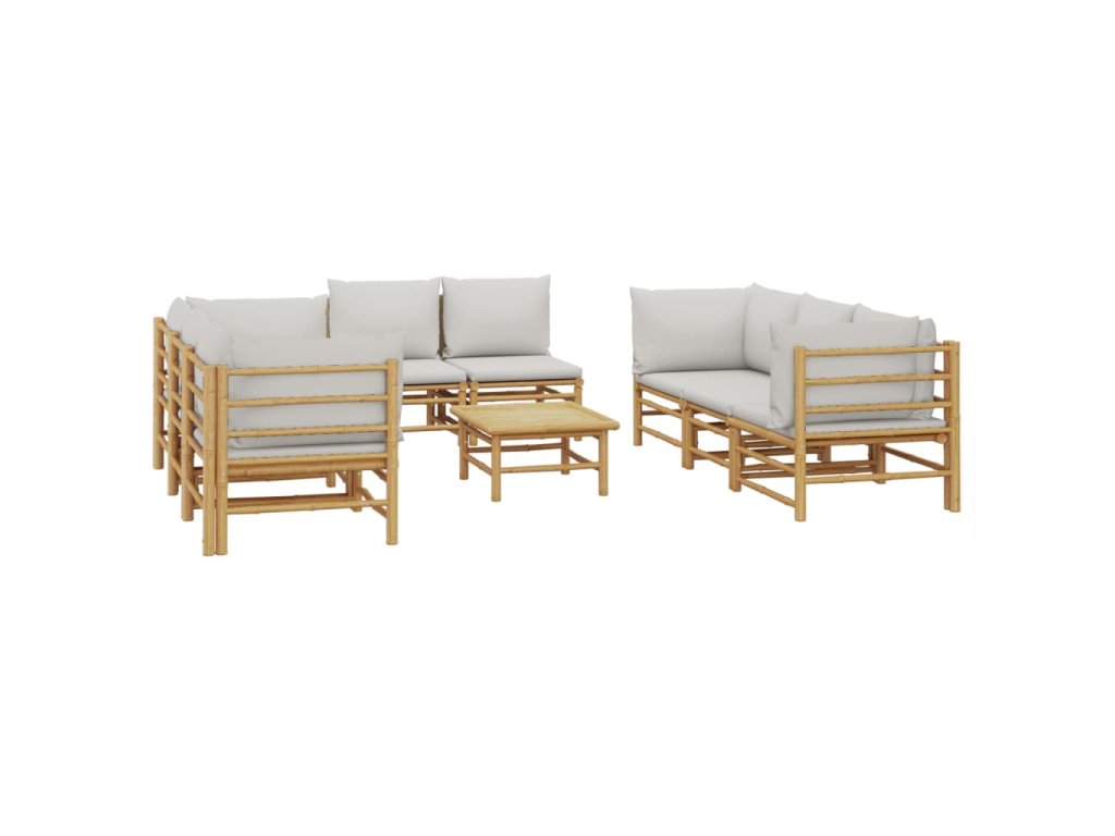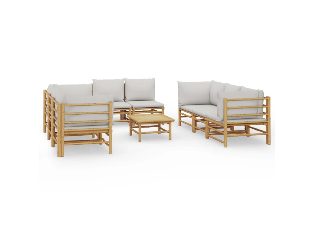 vidaXL 9-dielna záhradná sedacia súprava bledosivé vankúše bambus