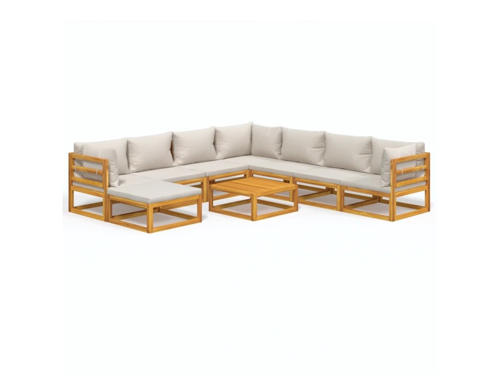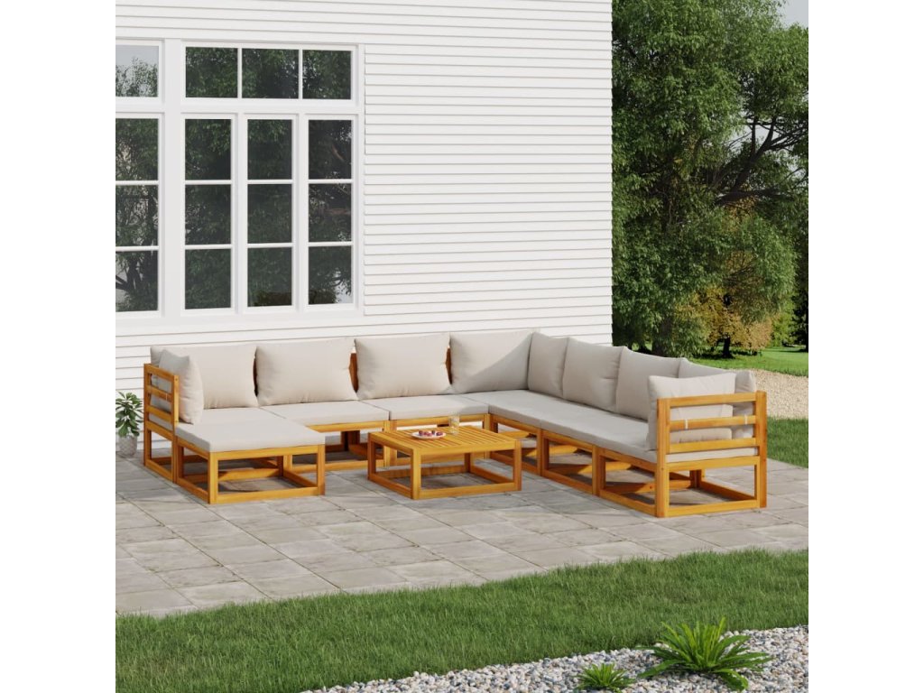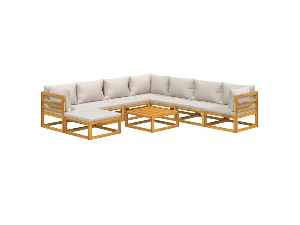 vidaXL 9-dielna záhradná sedacia súprava bledosivé vankúše masív