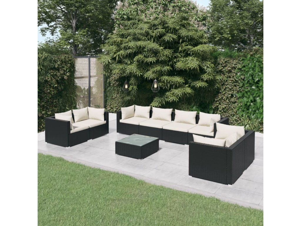 vidaXL 9-dielna záhradná sedacia súprava s vankúšmi polyratan čierna