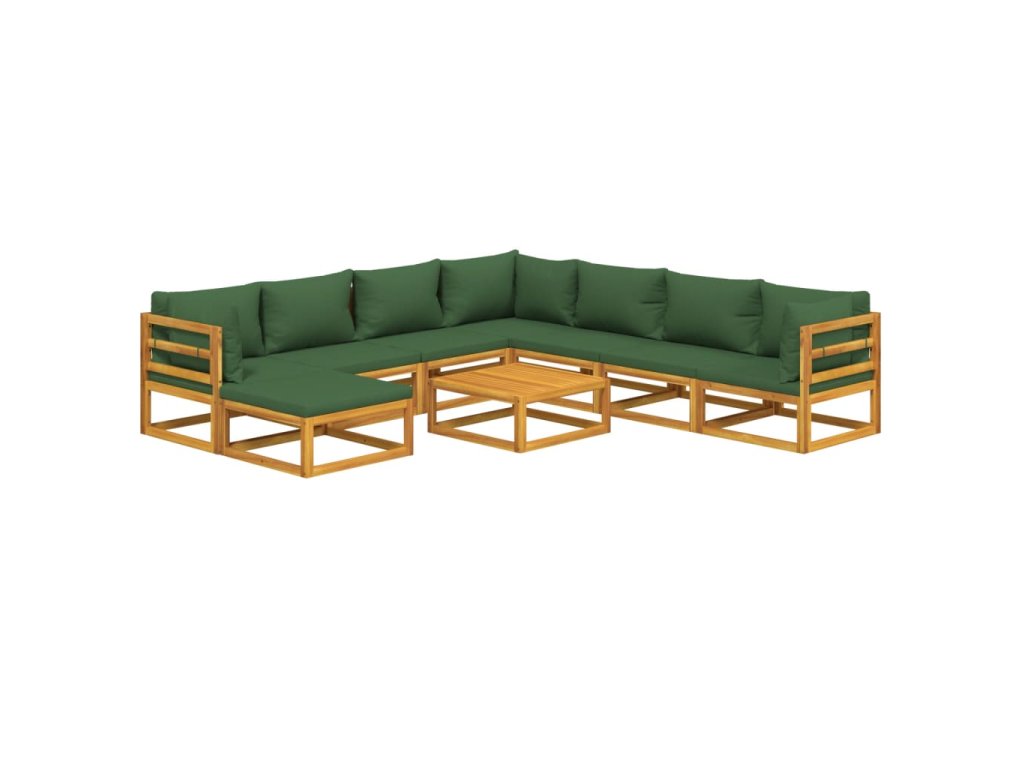 vidaXL 9-dielna záhradná sedacia súprava zelené vankúše masív