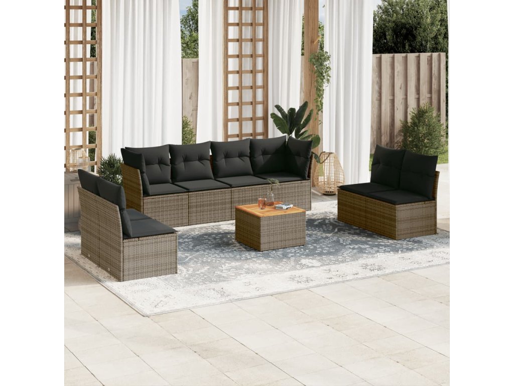 vidaXL 9-dielna záhradná súprava pohoviek s vankúšmi sivá polyratanová