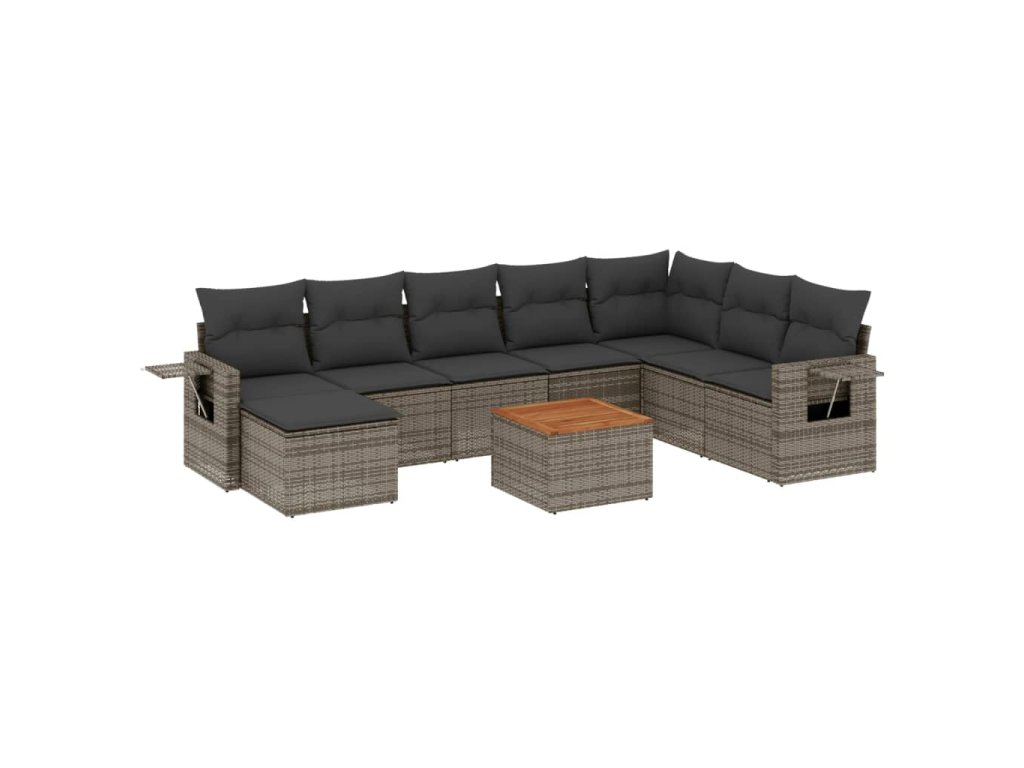 vidaXL 9-dielna záhradná súprava pohoviek s vankúšmi sivá polyratanová