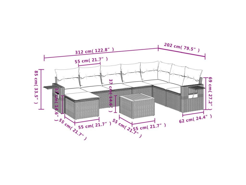 - Modulárny dizajn: Táto súprava vonkajšieho nábytku má modulárny dizajn, vďaka čomu je úplne flexibilná a ľahko sa premiestňuje, takže si môžete vytvoriť prispôsobené usporiadanie vonkajšieho nábytku.