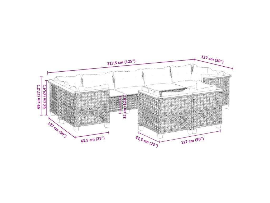vidaXL 9-dielna záhradná súprava pohoviek s vankúšmi sivá polyratanová