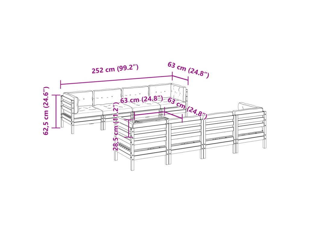 vidaXL 9-dielna záhradná súprava s podložkami, voskovo hnedá, borovica