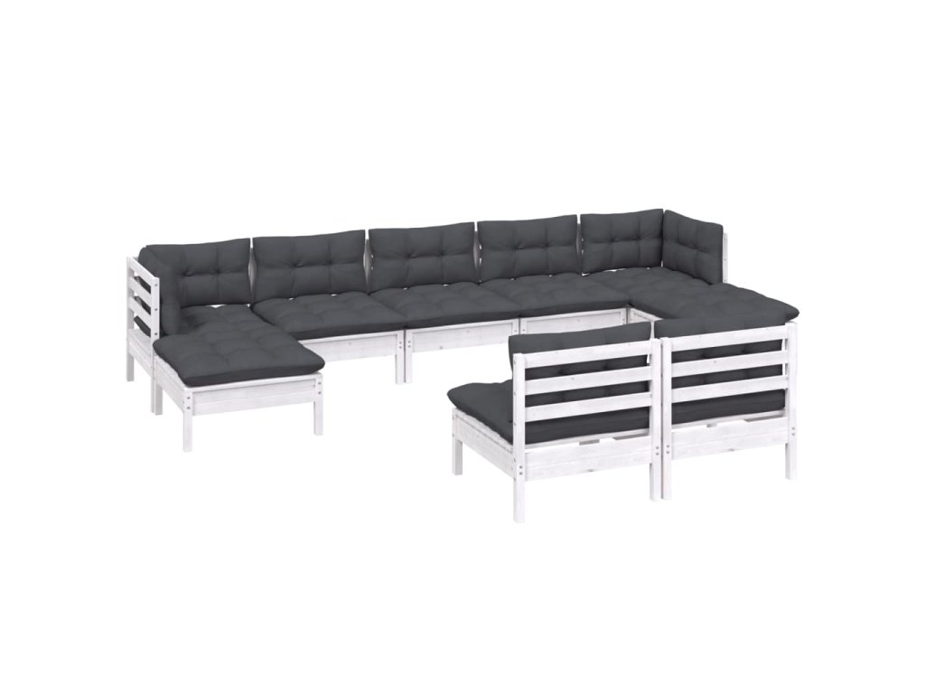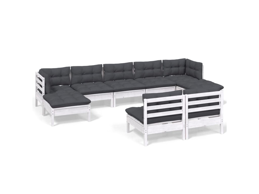 vidaXL 9-dielna záhradná súprava s vankúšmi biela borovica
