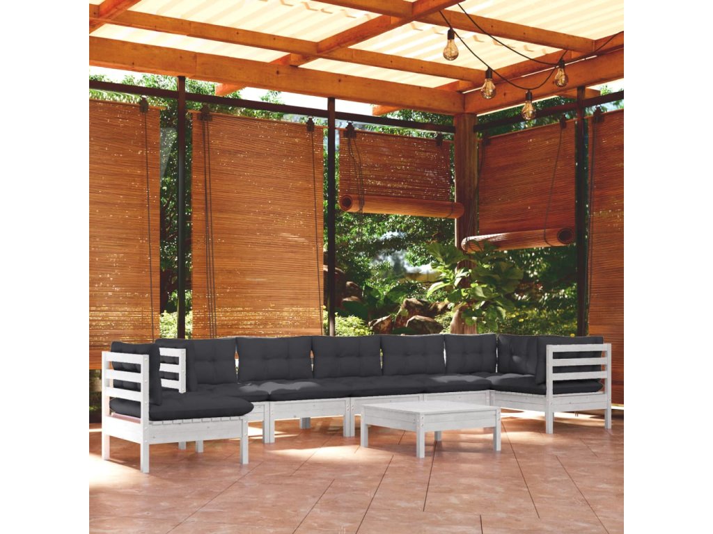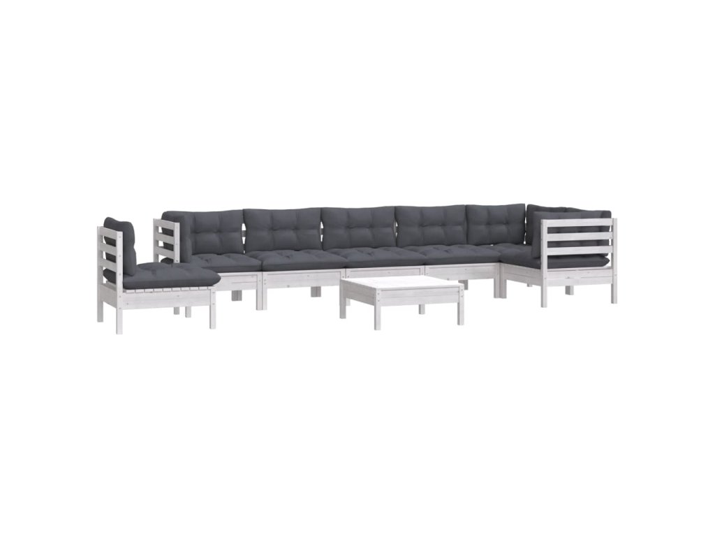 vidaXL 9-dielna záhradná súprava s vankúšmi biela borovicový masív