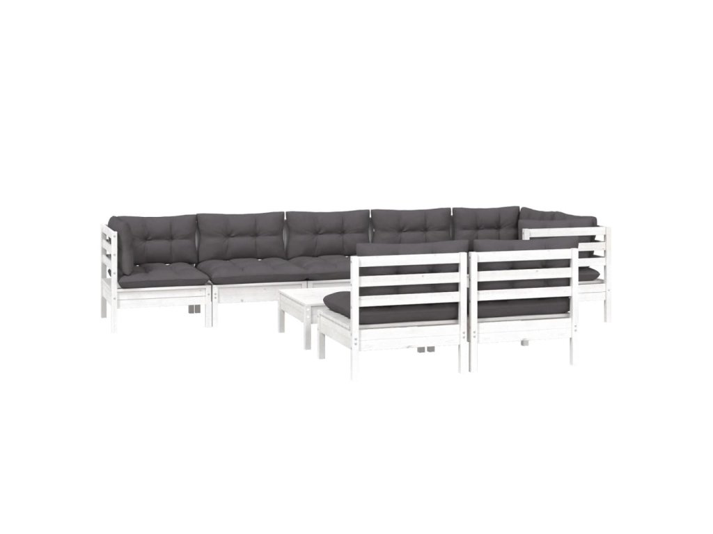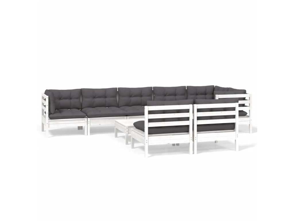 vidaXL 9-dielna záhradná súprava s vankúšmi biela borovicový masív