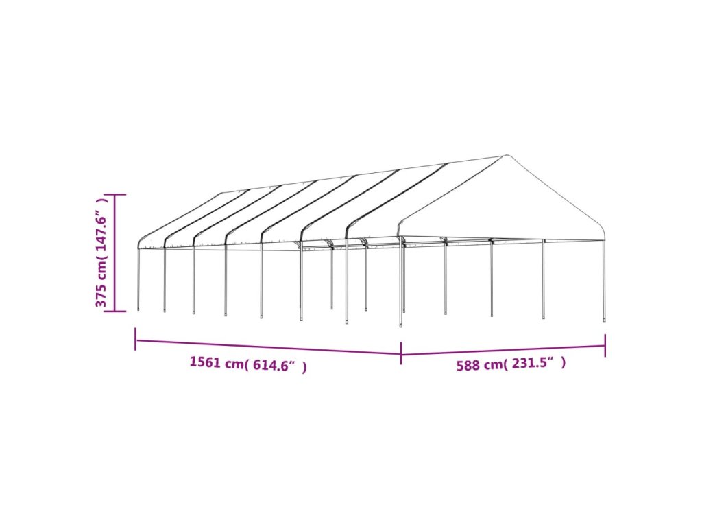 vidaXL Altánok so strechou, biely 15,61x5,88x3,75 m, polyetylén