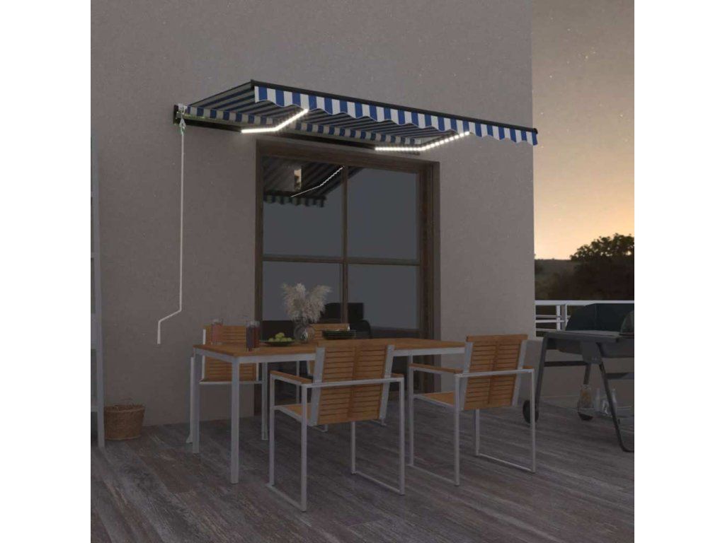 vidaXL Automatická markíza, LED a senzor vetra 350x250 cm, modrá/biela