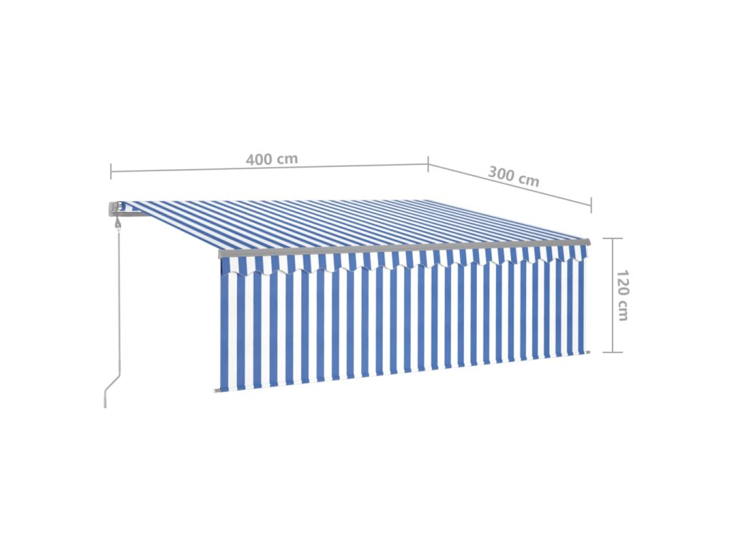 vidaXL Automatická markíza s tienidlom 4x3m modro-biela