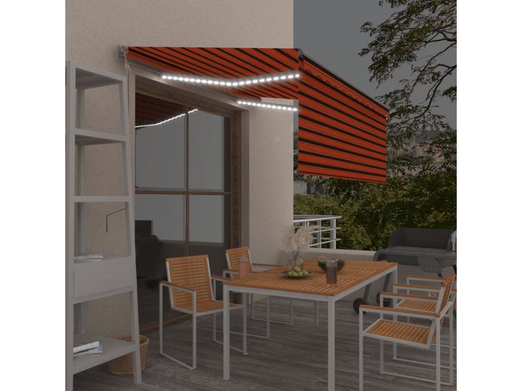 vidaXL Automatická markíza tienidlo&LED&senzor vetra oranžovo-hnedá