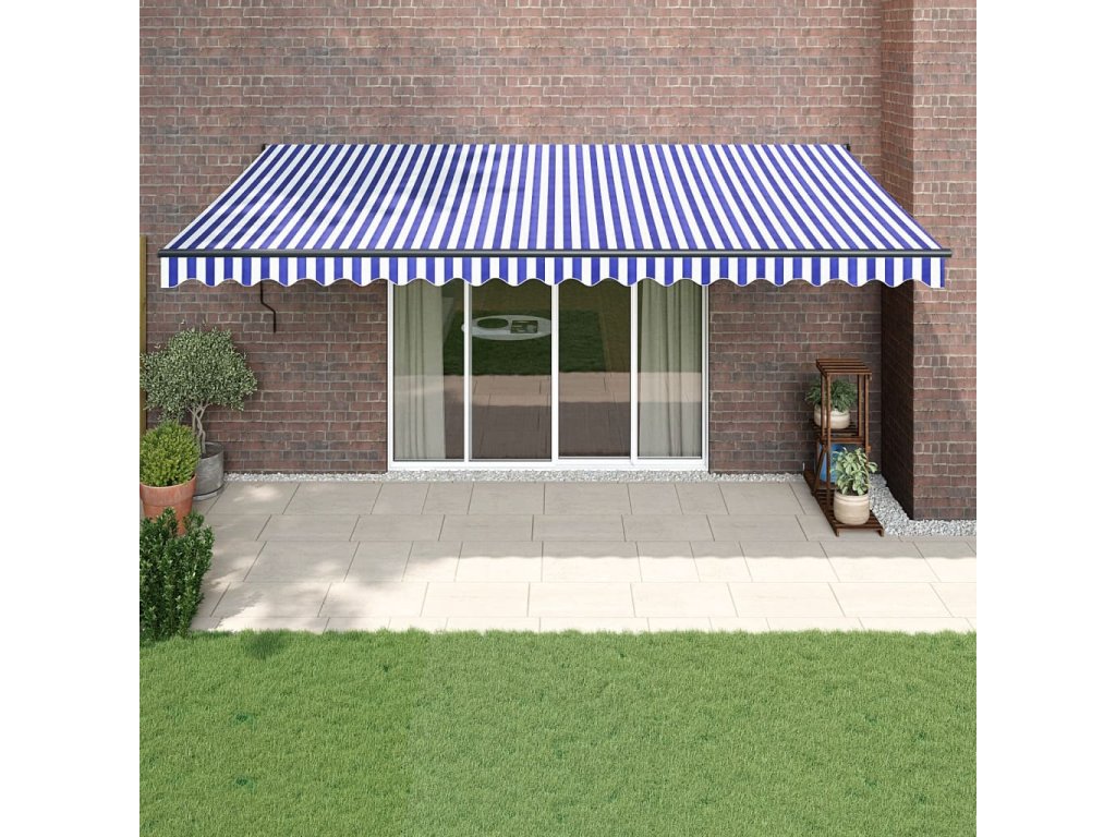 vidaXL Automatická zaťahovacia markíza, modrá a biela 5x3 m