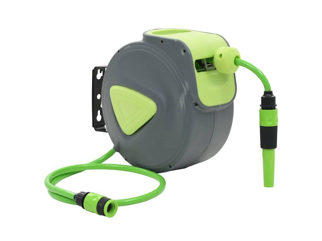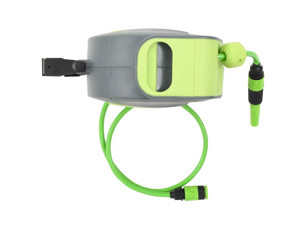 Tento samonavíjací hadicový navijak je dodávaný spolu s konektorom a rozprašovačom. Dá sa nainštalovať na stenu, aby umožnil polievanie a zavlažovanie záhrad, umývanie áut a podobne.