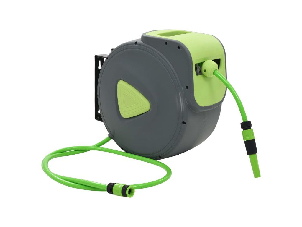 Tento samonavíjací hadicový navijak je dodávaný spolu s konektorom a rozprašovačom. Dá sa nainštalovať na stenu, aby umožnil polievanie a zavlažovanie záhrad, umývanie áut a podobne.