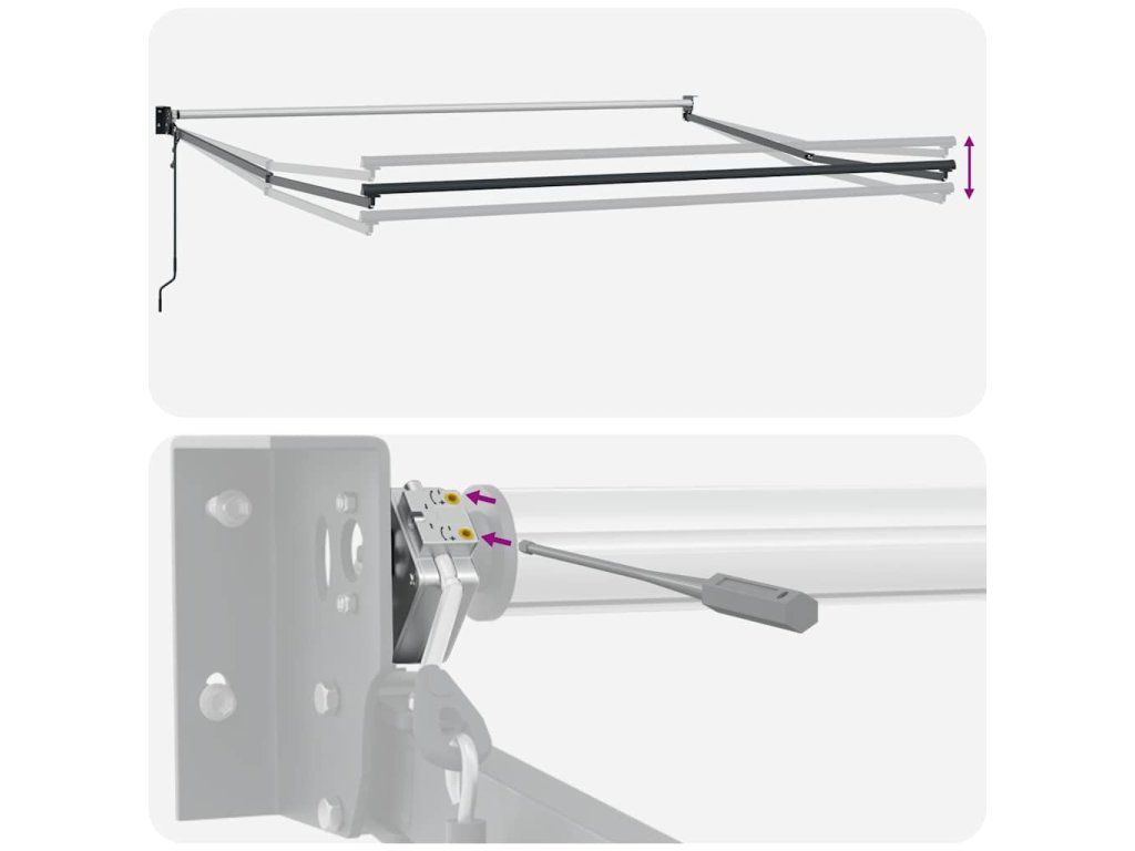 - Odolný materiál: Rám markízy je vyrobený z hliníka s práškovým nástrekom, ktorý je robustný a odolný. Látka s PU povrchovou úpravou je UV odolná. Vašu rodinu alebo hostí ochráni pred UV lúčmi a oslňujúcim slnečným žiarením.