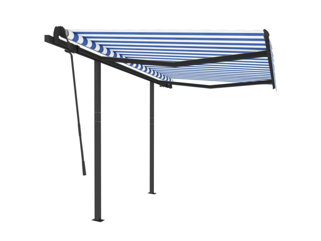 vidaXL Automaticky zaťahovacia markíza so stĺpikmi 3,5x2,5m modrobiela