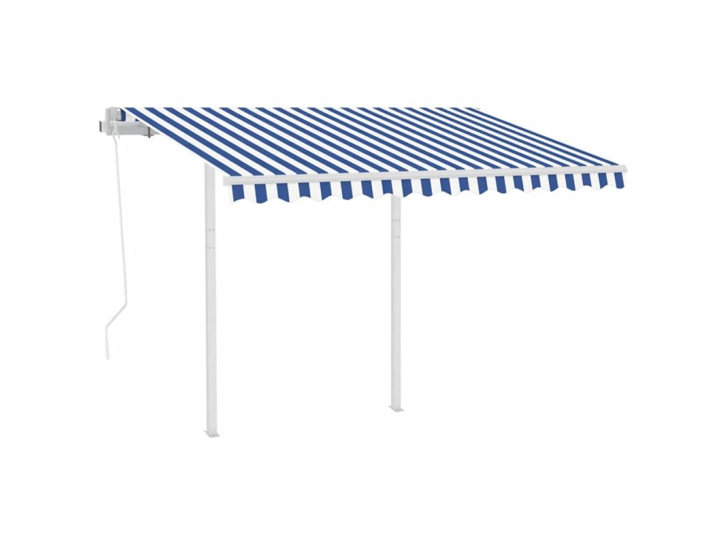 vidaXL Automaticky zaťahovacia markíza so stĺpikmi 3,5x2,5m modrobiela