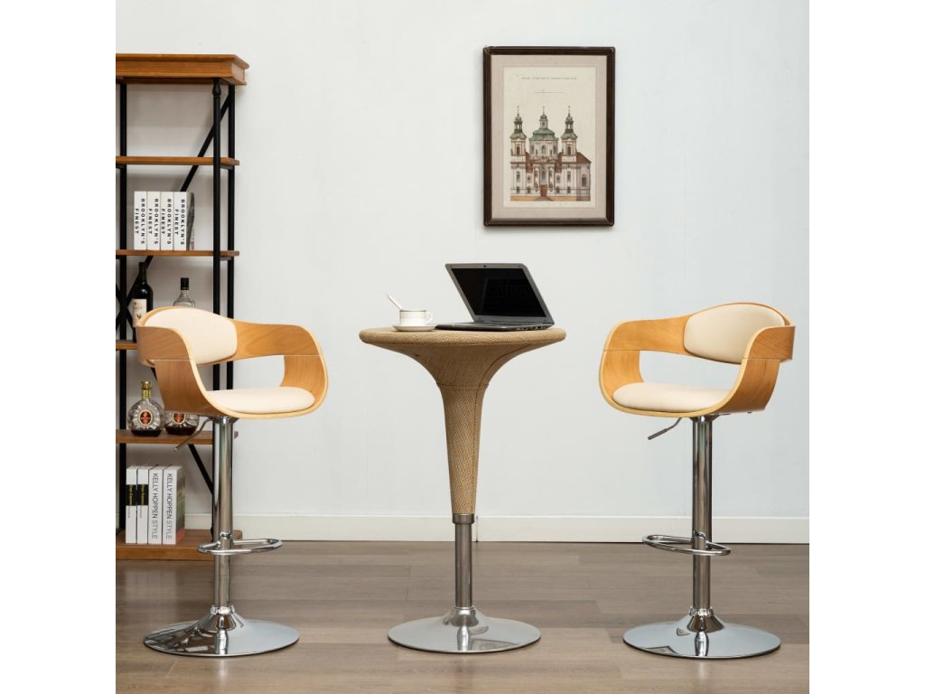 Stoličky sú čalúnené ľahko čistiteľnou umelou kožou, aby poskytovali optimálne pohodlie. Ohnutý drevený rám dodáva stoličke jedinečnú krásu a štýl. Chrómovaná kovová základňa poskytuje vysokú pevnosť, zatiaľ čo vstavaná opierka nôh poskytuje dodatočné potešenie zo sedenia. Vďaka ergonomickému dizajnu sa na tejto stoličke veľmi pohodlne sedí dlhé hodiny. Navyše, vďaka mechanizmu plynového piestu sa dajú tieto barové stoličky výškovo nastavovať a bude perfektným doplnkom akéhokoľvek funkčného baru alebo jedálenského priestoru.