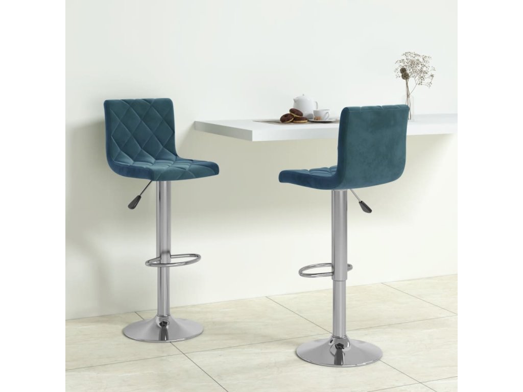 vidaXL Barové stoličky 2 ks modré zamatové