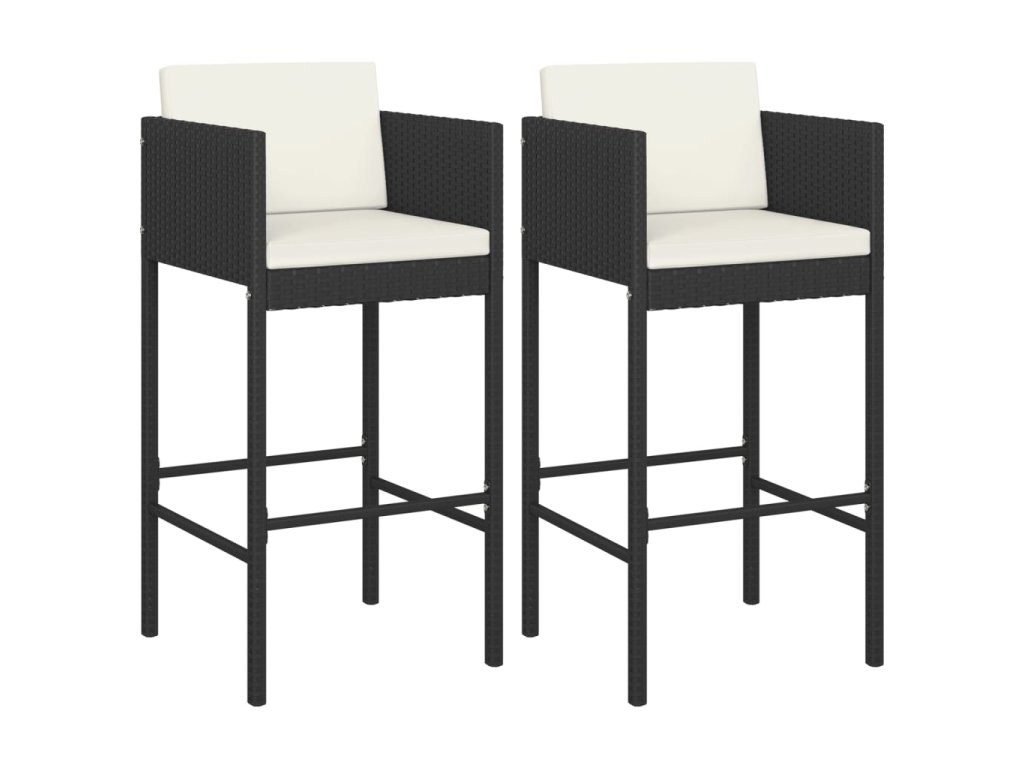 vidaXL Barové stoličky 2 ks s podložkami čierne polyratanové