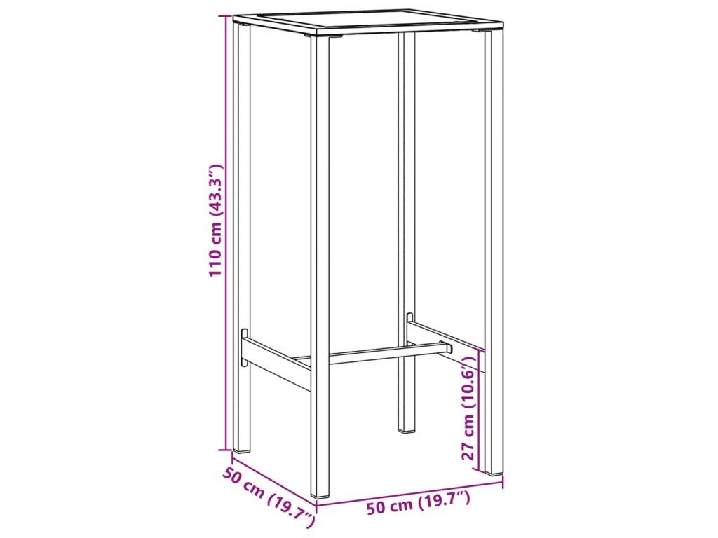 vidaXL Barový stolík, čierny 50x50x110 cm, oceľ s práškovou úpravou