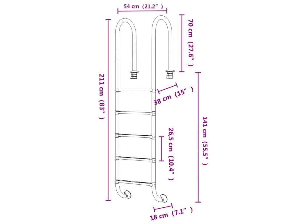 - Široké uplatnenie: Bazénový rebrík je ideálnou voľbou pre rôzne miesta, ako sú bazény, šikmé vstupy, kúpele, vodné parky atď.